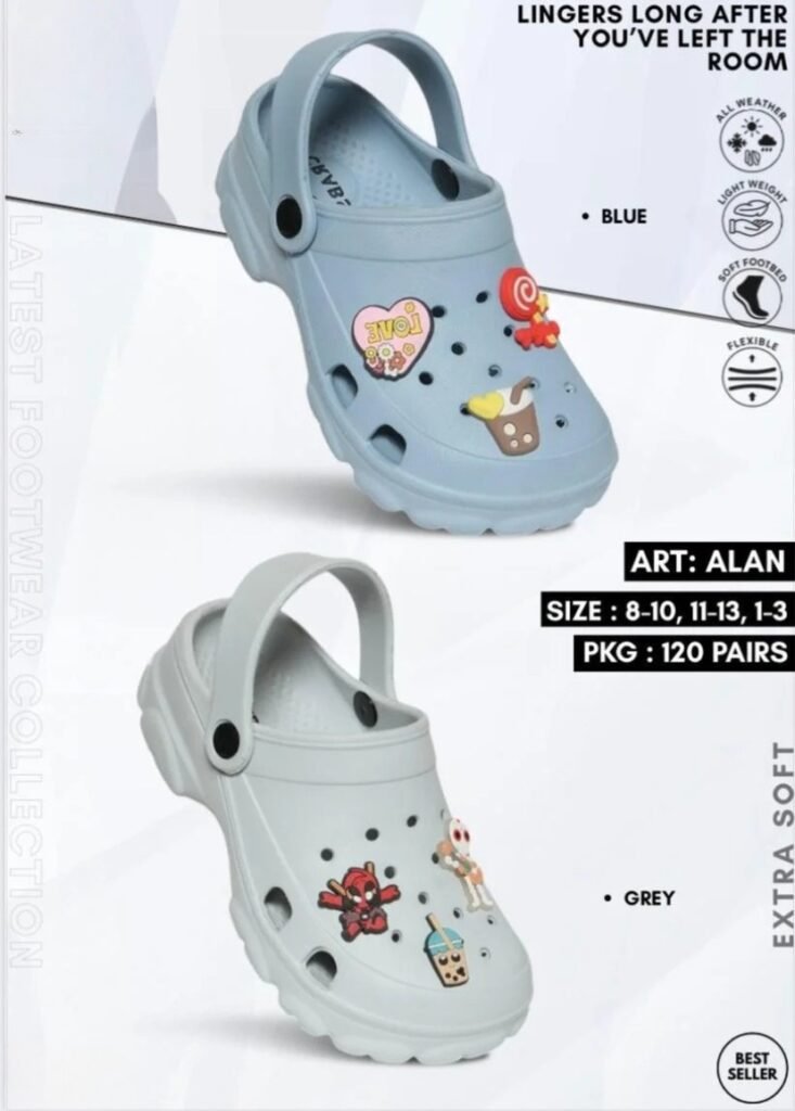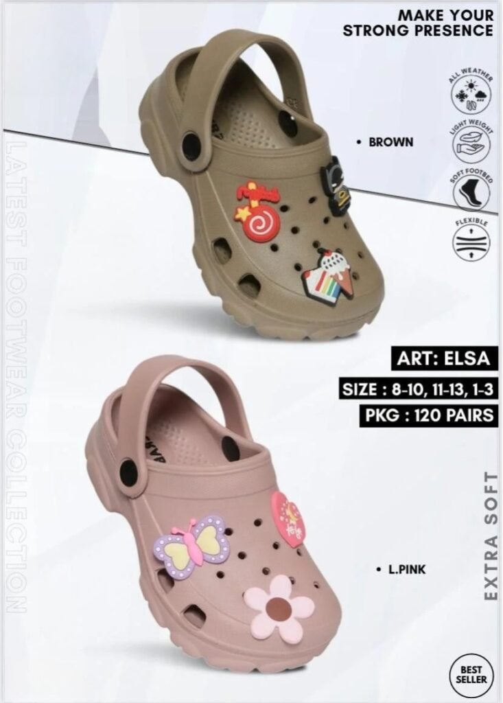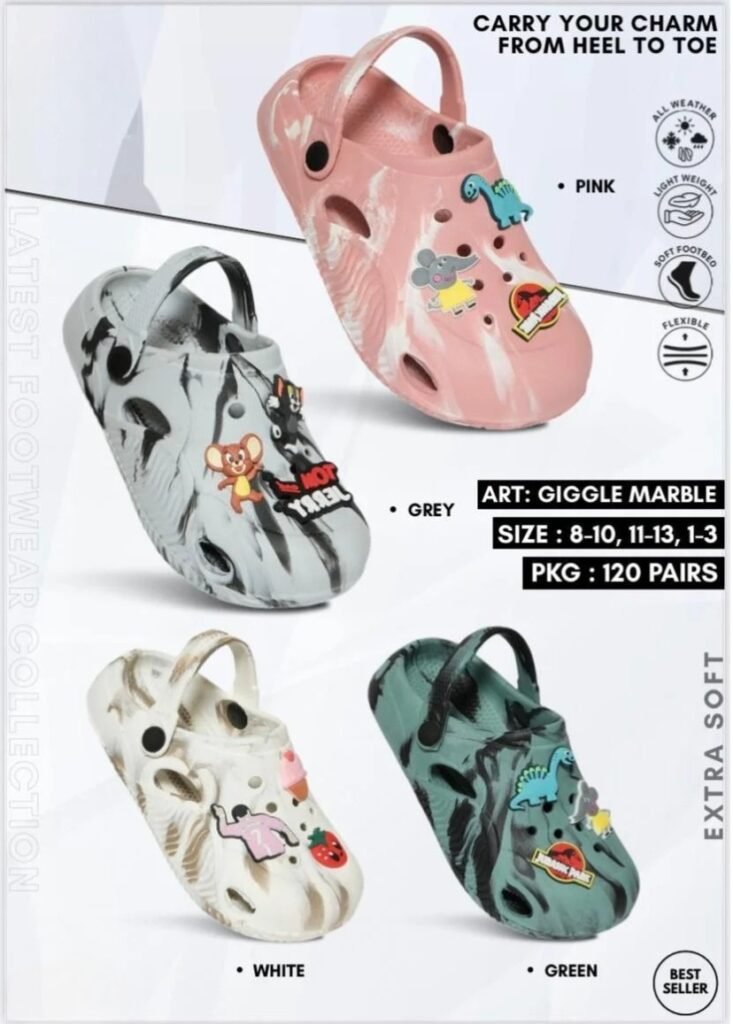 Our kids’ footwear collection is designed with special care to provide comfort, safety, and durability for growing feet. Made from high-quality EVA and PU materials, our slippers are lightweight, flexible, and gentle on the skin, ensuring easy movement and all-day comfort. Featuring soft cushioning, secure grip soles, and attractive designs, our kids’ footwear is ideal for daily wear and active use. With a focus on quality and child-friendly construction, each pair supports safe steps and happy movement.